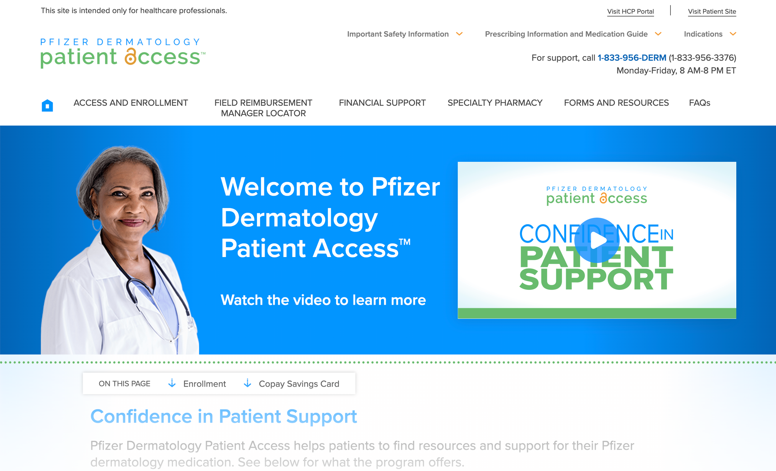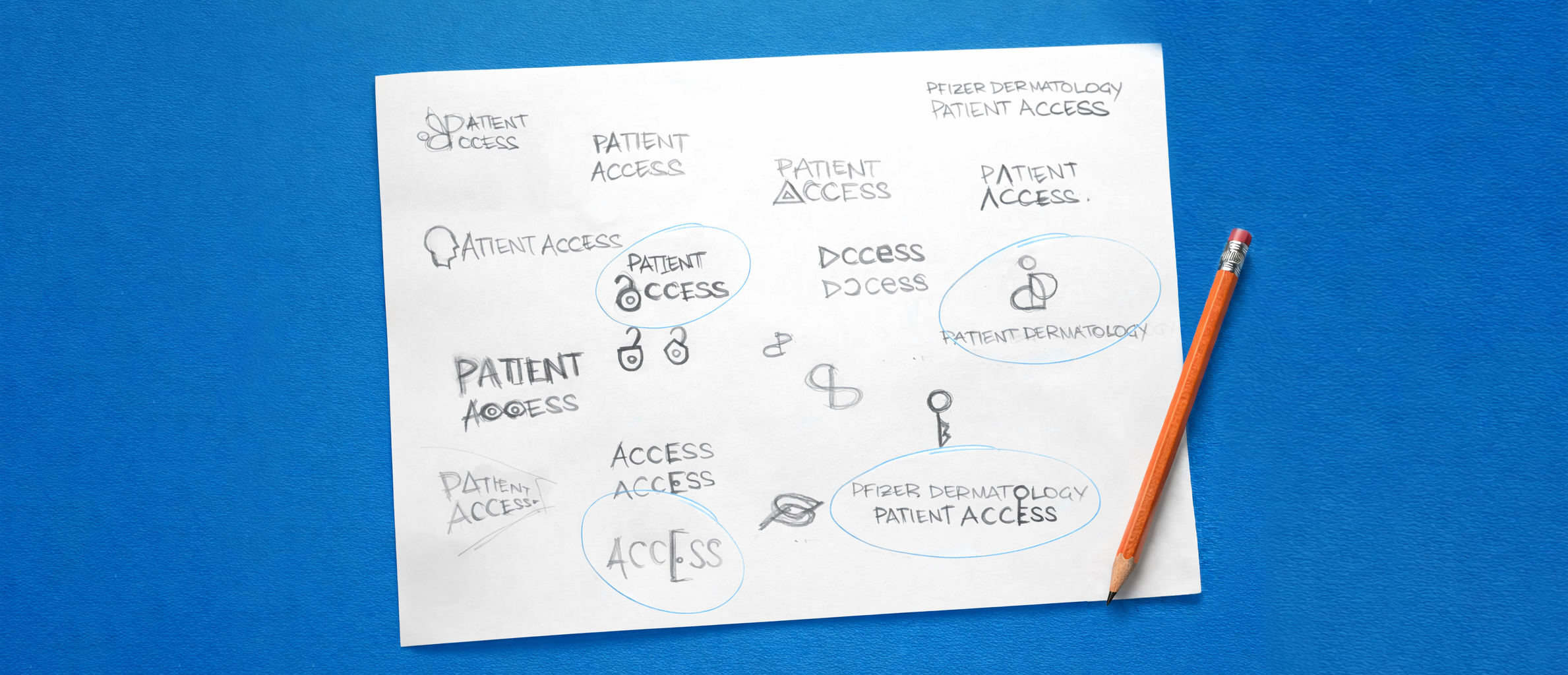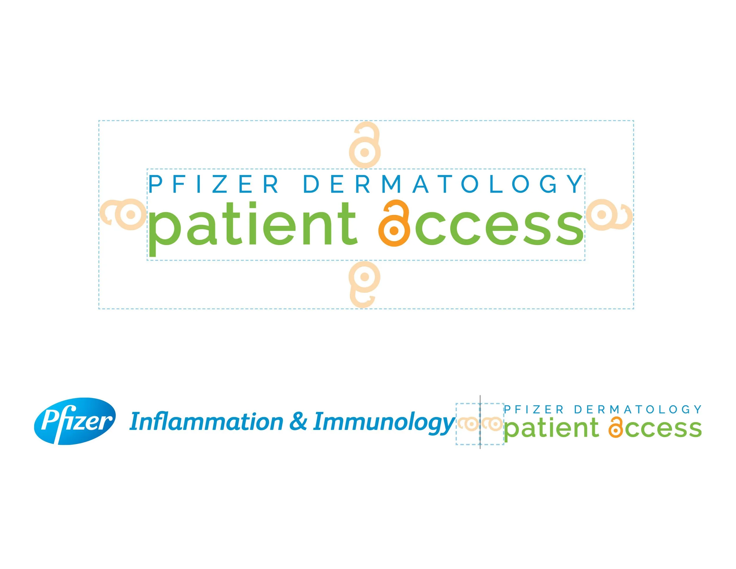 For the Pfizer Dermatology Patient Access™ program, we created a logo built around the idea of easier access to treatment. The open-lock symbol is integrated directly into the typography, making the concept clear at a glance and giving the mark a memorable visual hook.